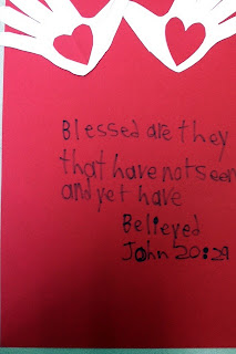 c)Children could discuss what faith really is and illustrate “What faith in Jesus means to me.” or make an “I Believe” door hanger or sign and decorate it however they like-with stickers or sequins or markers. We have some foam stickers in the game room on the craft table if you want to use them.
