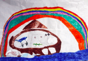 “Yeah!” a child said. “He promised to never send a flood again!”