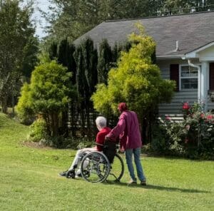 We said goodbye, but I couldn’t leave yet. I sat in the driveway and watched his neighbor push Mr. Knighten through the grass, showing him his beautiful yard. Mr. Knighten beamed.